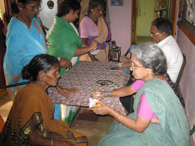 has been gathering information from health columns in Telugu news papers and making brochures out of them. Each week she has been counseling the patients on one particular topic like blood pressure, diabetes, anemia etc and also informing about the kind of diet that helps control those conditions. Then