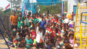 So to celebrate this, they started putting together a cultural program on every Indian Republic Day, which coincides with the anniversary of the inauguration of the play park that we built for them with our family's support. The program includes flag hoisting, speeches, songs, skits and dances by the kids that reflect patriotism and other good values that they learn in our Balvikas classes throughout the year.